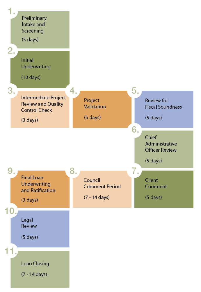 Prince George's County Departments & Offices County Executive Economy EDI Fund The Process Timeline The Process Timeline The loan process is approximately 90 days. County Executive - Community - Community Partnership Grant (CPG) - Community Partnership Grant Awardees Community Relations Local Development Council - Local Impact Grant Relevant Law and Multi-Year Spending Plans Veterans Affairs Youth Programs LGBTQIA+ Affairs Municipal Affairs Office of Multicultural Affairs Economy - EDI Fund - Apply Now Awardees Geographic Priority Areas The Process Timeline Geographic Development Incentives - County Incentives - Revitalization Tax Credit School Facilities Surcharge Reductions/ Exemptions Tax Increment Financing (TIF) Districts State Incentives - Base Realignment & Closure (BRAC) Zones Enterprise Zone Priority Funding Areas Sustainable Communities Initiatives - Annual and Legislative Reports - Legislative Priorities Diversity, Equity, & Inclusion - Employee Resource Groups Employee Training & Professional Development Strategic Partnerships Division Boards & Commissions Project Elevate Executive Orders About the County Executive - Communications and Media News To Use Office of the County Executive Federal Government Shutdown - Food and Basic Needs (Clothing, Medical, and Emergency) Utilities Assistance Unemployment During Federal Shutdown Housing Protection Career and Job Search Prince George's County Financial Resources County Executive - Community - Community Partnership Grant (CPG) - Community Partnership Grant Awardees Community Relations Local Development Council - Local Impact Grant Relevant Law and Multi-Year Spending Plans Veterans Affairs Youth Programs LGBTQIA+ Affairs Municipal Affairs Office of Multicultural Affairs Economy - EDI Fund - Apply Now Awardees Geographic Priority Areas The Process Timeline Geographic Development Incentives - County Incentives - Revitalization Tax Credit School Facilities Surcharge Reductions/ Exemptions Tax Increment Financing (TIF) Districts State Incentives - Base Realignment & Closure (BRAC) Zones Enterprise Zone Priority Funding Areas Sustainable Communities Initiatives - Annual and Legislative Reports - Legislative Priorities Diversity, Equity, & Inclusion - Employee Resource Groups Employee Training & Professional Development Strategic Partnerships Division Boards & Commissions Project Elevate Executive Orders About the County Executive - Communications and Media News To Use Office of the County Executive Federal Government Shutdown - Food and Basic Needs (Clothing, Medical, and Emergency) Utilities Assistance Unemployment During Federal Shutdown Housing Protection Career and Job Search Prince George's County Financial Resources