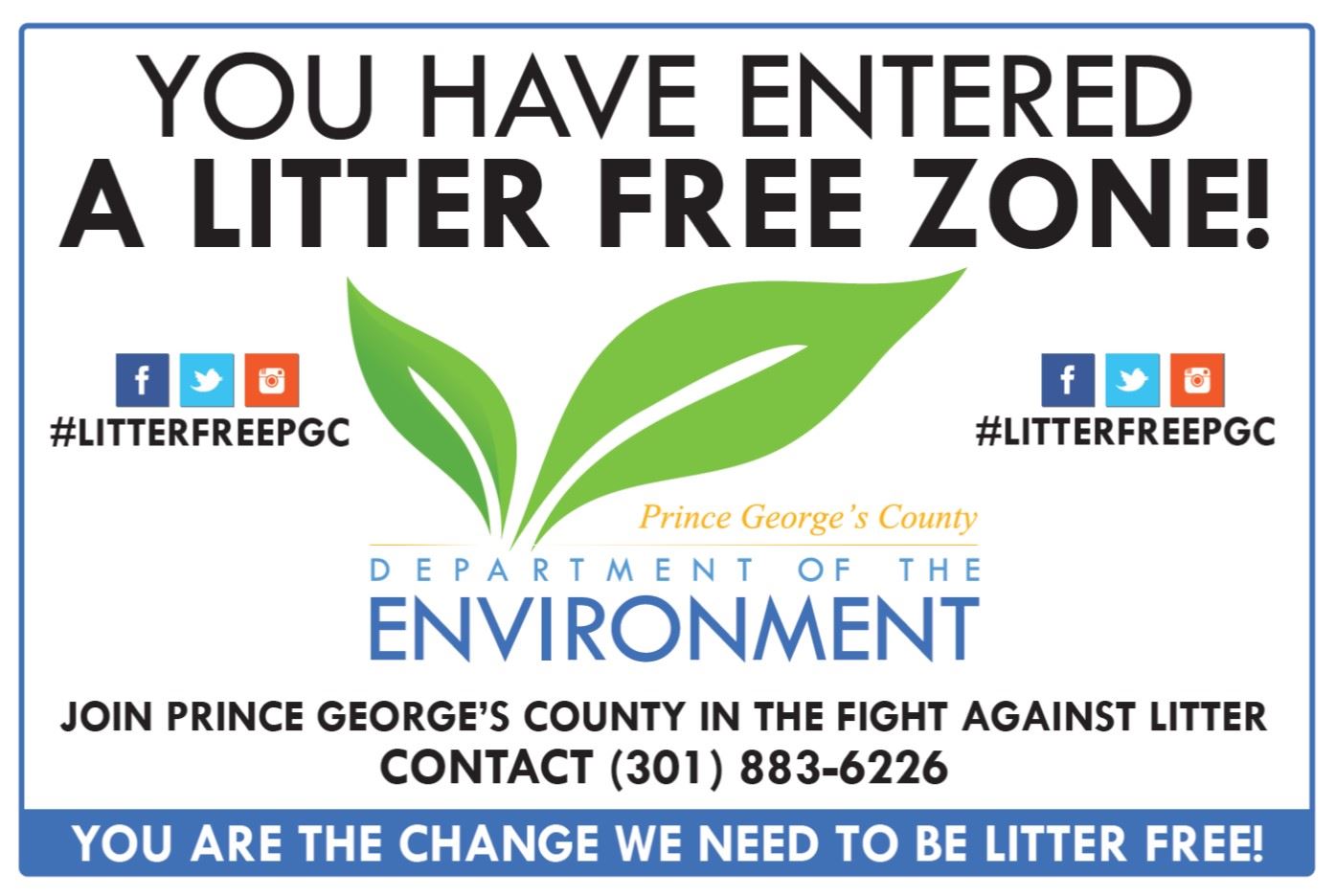 For more information or to become involved in the fight for a Litter Free Prince George’s County, please contact Tiaa Rutherford, Litter Reduction Program Manager, at (301) 883-6226.
