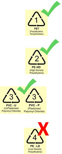 - "3" signifies polyvinyl chloride (PVC) such as pipes, siding, flooring, etc.