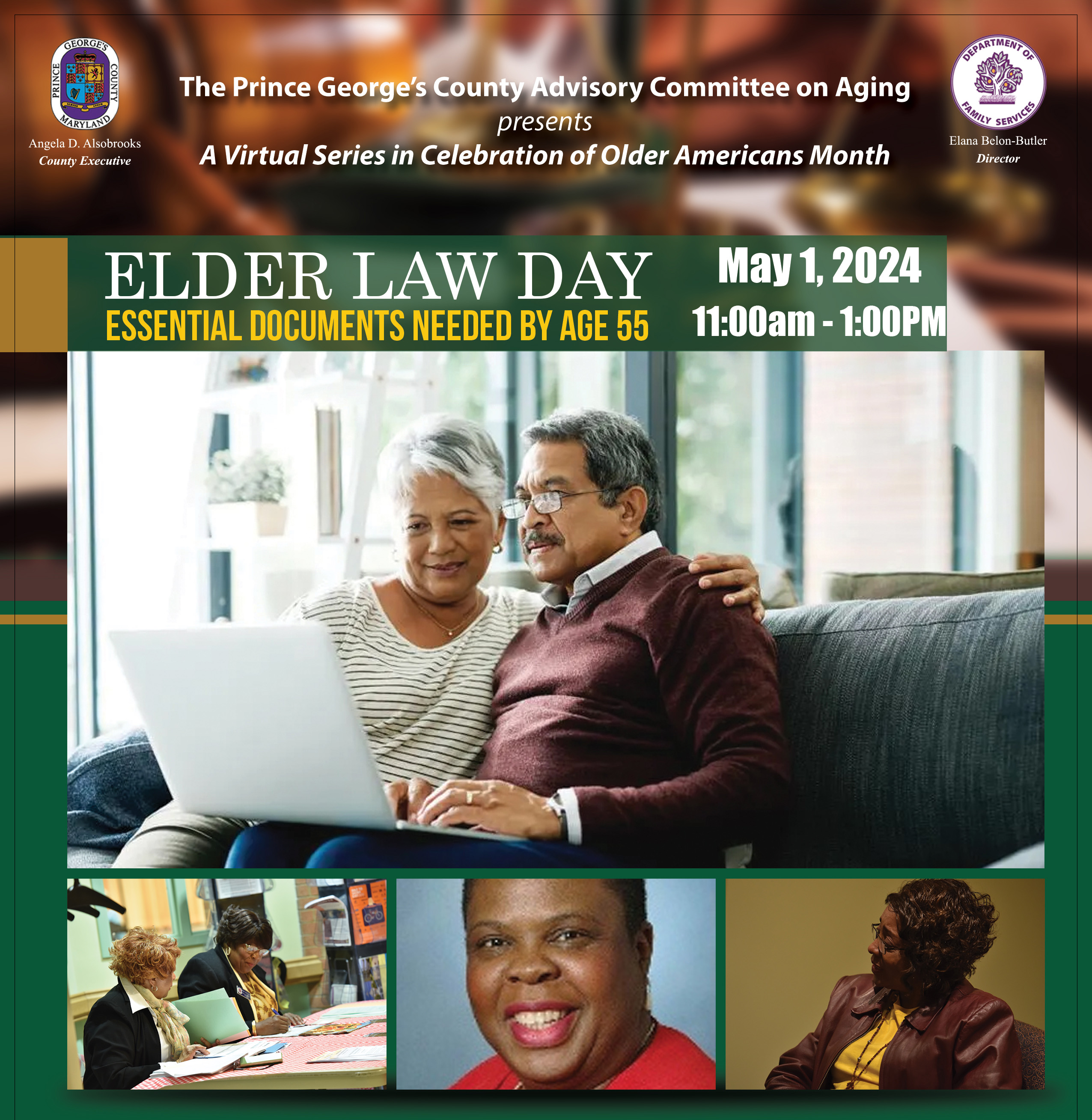 In celebration of Older Americans Month, the Prince George’s County Advisory Committee on Aging is hosting a free and virtual, legal presentation for older adults. Motivational Speaker and Attorney, Karen Pope-Onwukwe will lead the discussion on Essential Documents Needed by Age 55. To register, click here. For more information, email the Advisory Committee on Aging at agingadvisory@co.pg.md.us.