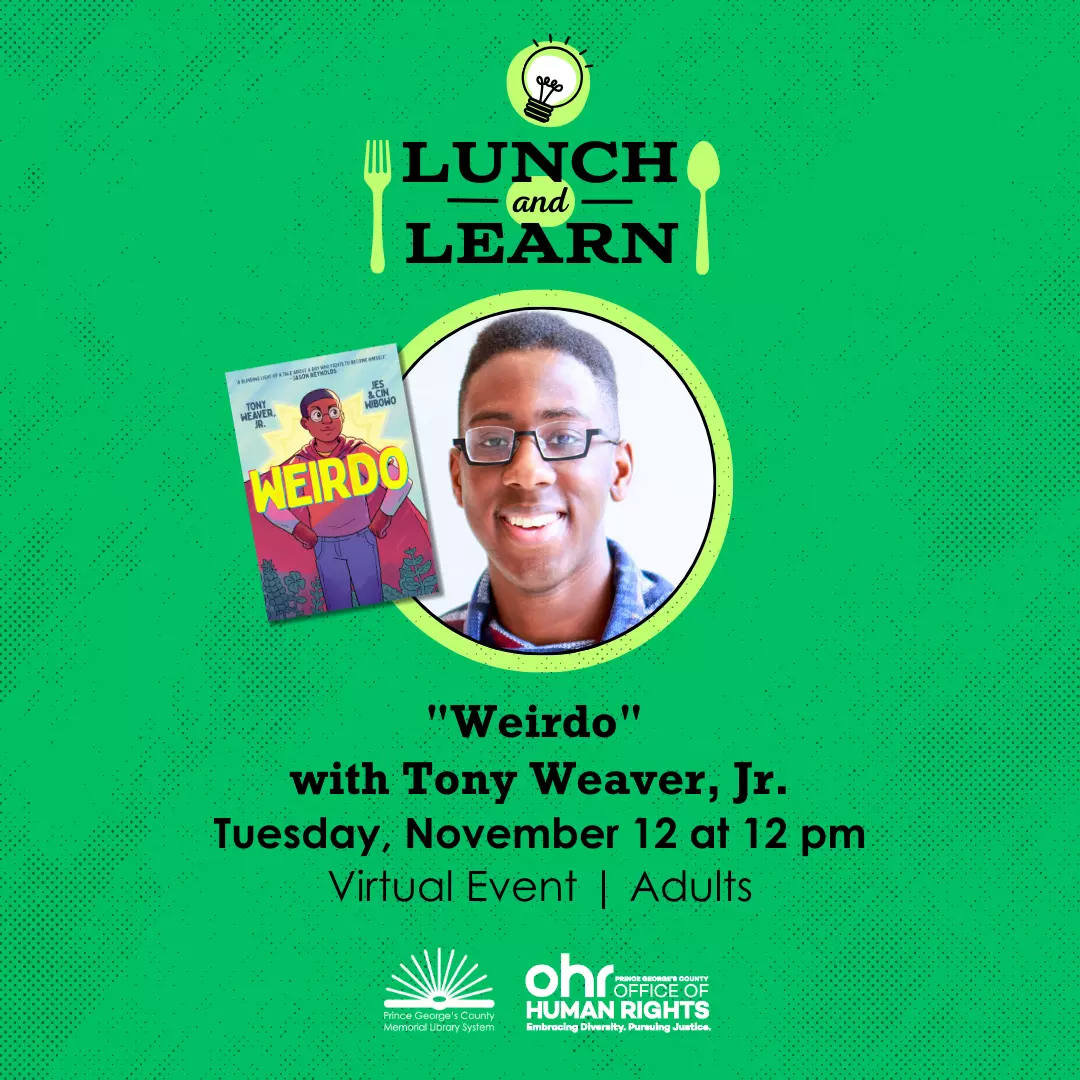 Lunch and Learn returns with special guest Tony Weaver, Jr., in conversation with the Prince George's County Office of Human Rights and the Prince George's County Memorial Library System. His new book, Weirdo, educates middle grade kids about self esteem and the issues with bullying, and we'll hear how he's using his voice on social media for good!