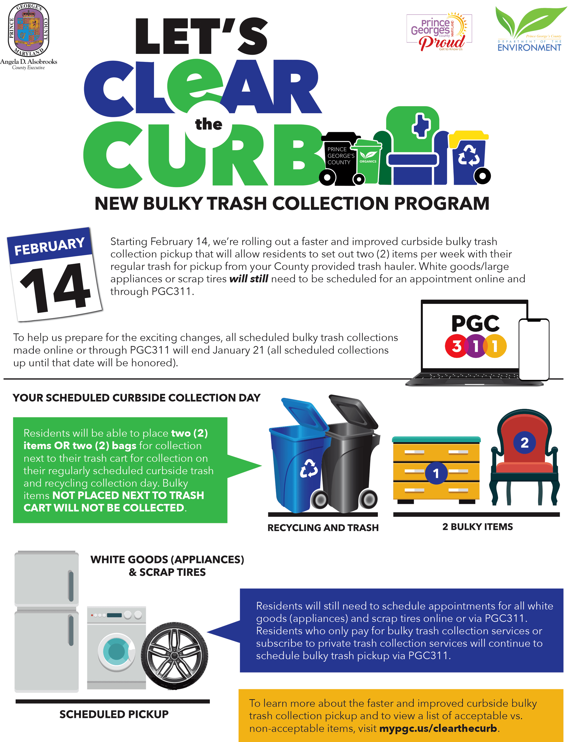 We are excited to bring updates and improvements to our Bulky trash collection service - beginning the week of February 14, 2022! For more details visit mypgc.us/clearthecurb.