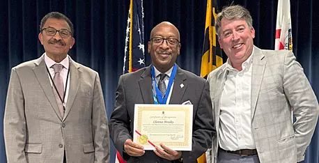 DPIE Director Dawit Abraham (pictured at left) nominated Mr. Moseley (center), who was presented the award by Jared McCarthy, Deputy Chief Administrative Officer for Government Operations for Prince George’s County and Acting Director of OHRM. Mr. McCarthy read the qualifying submission during the presentation to Mr. Moseley: