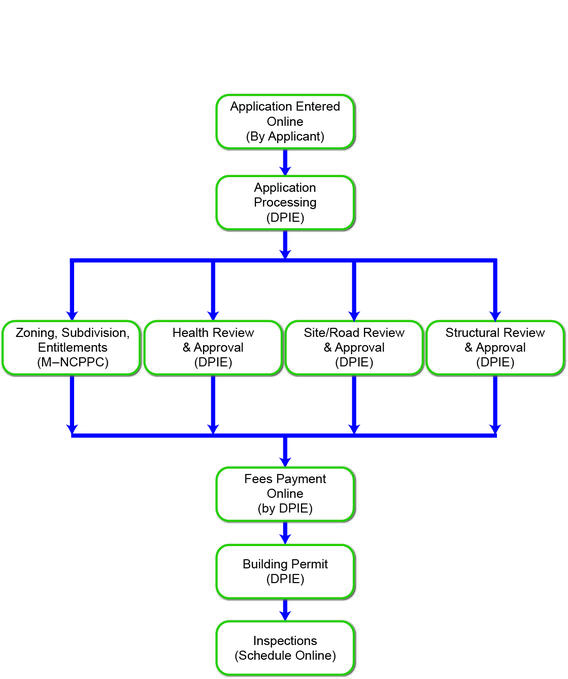 For permit, license and bond fees, view the DPIE Fee Schedule. There is a Minimum Fee. All permitting fees are assessed a Technology Fee. Fees are subject to change based on County codes. Customers are encouraged to pay online.