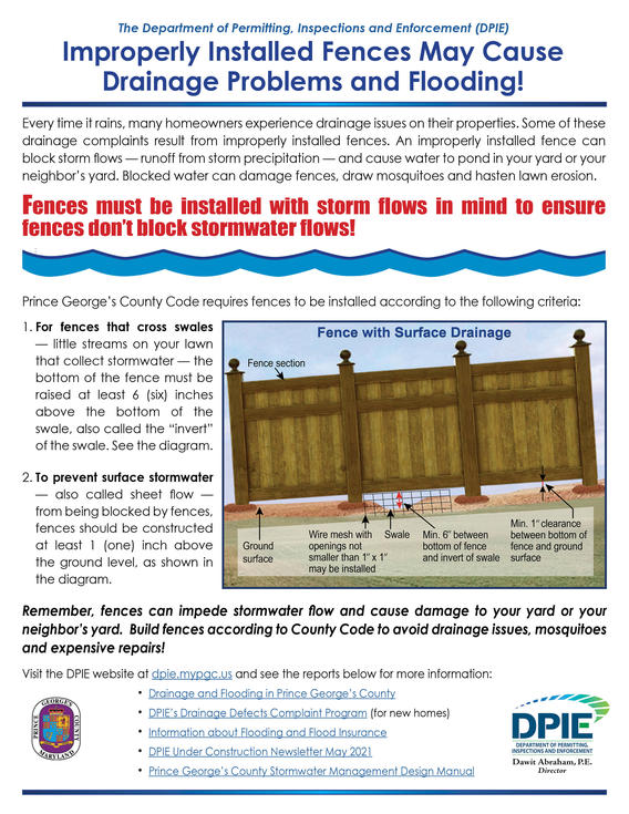 Improperly Installed Fences May Cause Drainage Problems and Flooding!